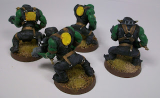 Got my first batch of Ork shoota boyz done and I am pretty pleased with how they turned out. I went for a basic paint job so I could kick out all the Ork boyz I need in a shorter time. After all I don't need really 90 perfect basic troop types. I'll save the better paint jobs for the characters, etc.