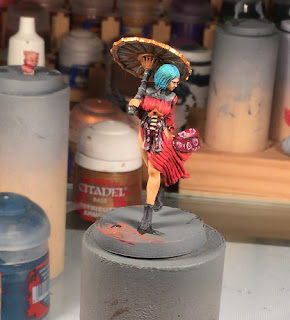 The painting Gods have struck! Perhaps because I have not done the great brush pilgrimage lately, or not uttered small prayers of thanks for letting me have a steady hand when needed. Whatever the case I cried the other day. Just small sobbing so my Wife couldn't hear me from the other room. But cried none the less. After like 8 hours of working on my HVT and putting the finishing touches on it, I dropped the bloody thing. Of course the umbrella bent, but she broke at the ankle🤬